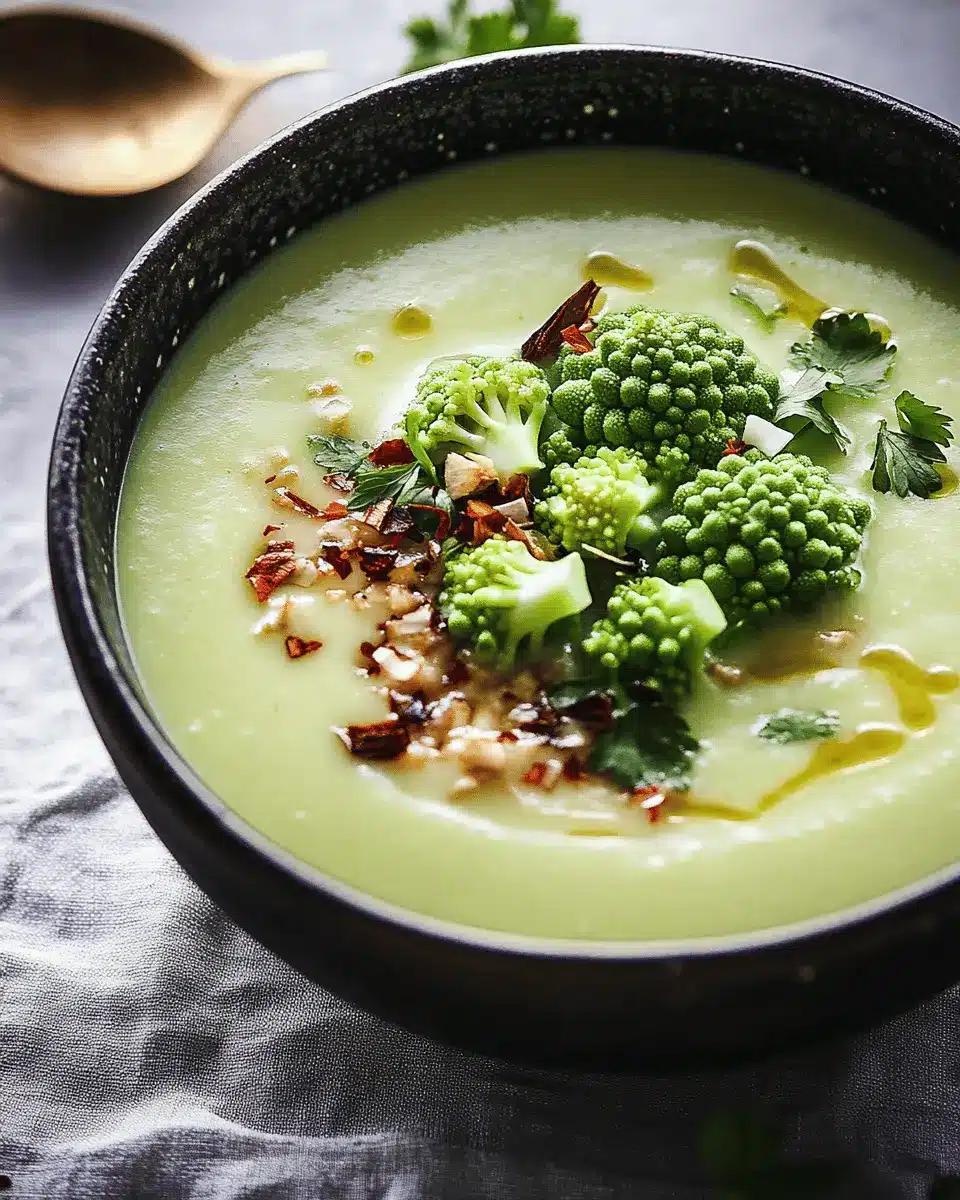 Eine cremige und wohlschmeckende Suppe aus Romanesco und Kokosmilch.