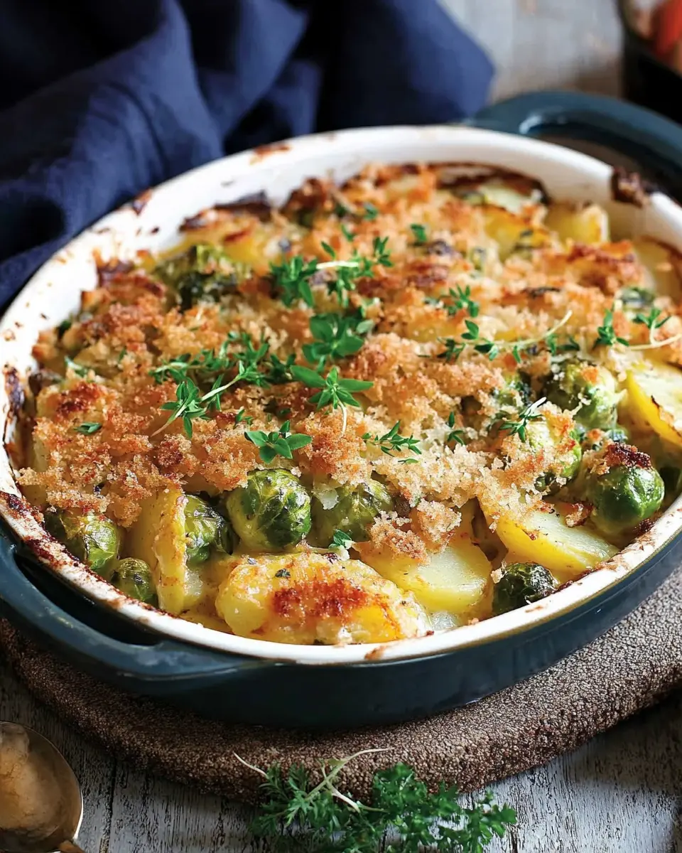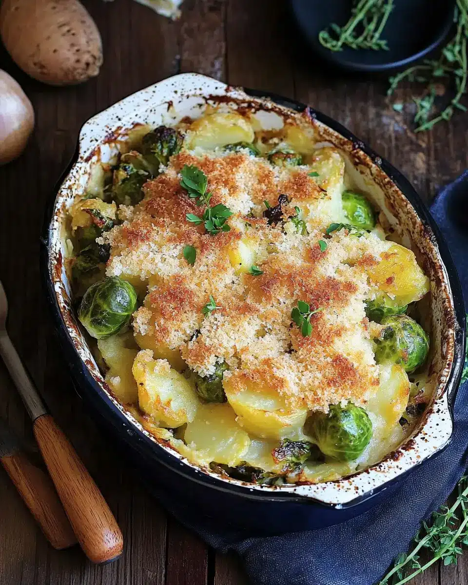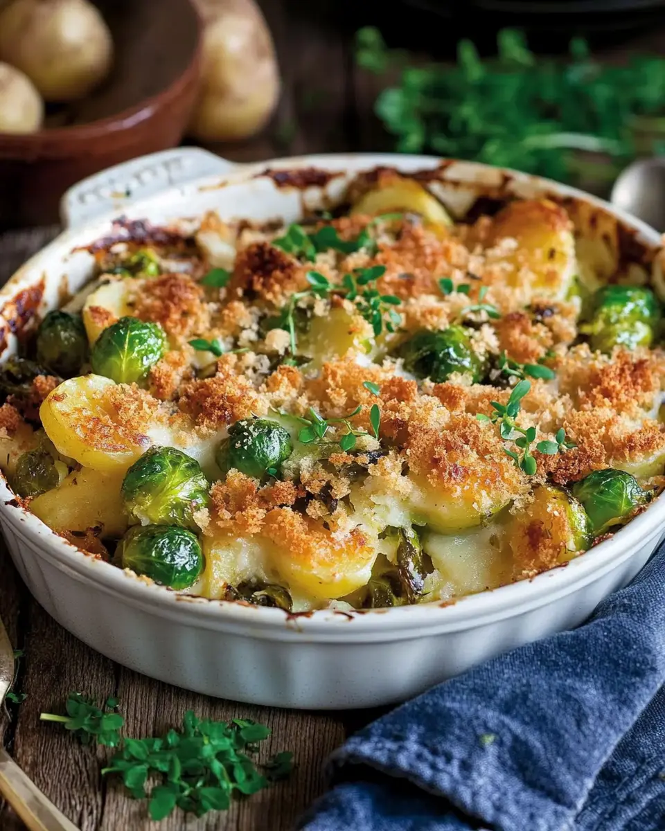 Ein herzhaftes und cremiges Gericht mit Rosenkohl und Kartoffeln.
