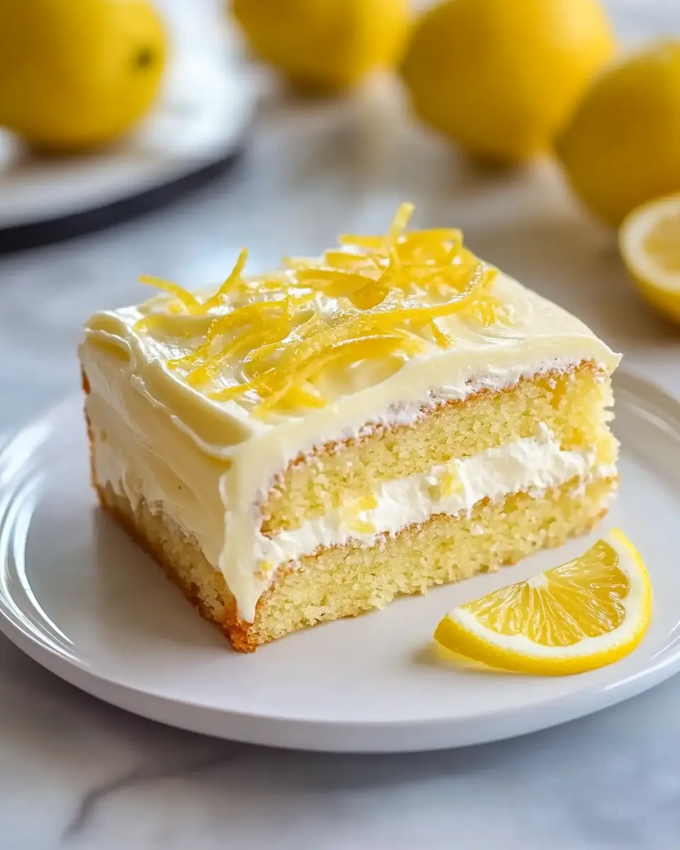 Ein saftiger Zitronenkuchen, gekrönt mit einem cremigen Frischkäsefrosting, perfekt für jedes Ereignis.